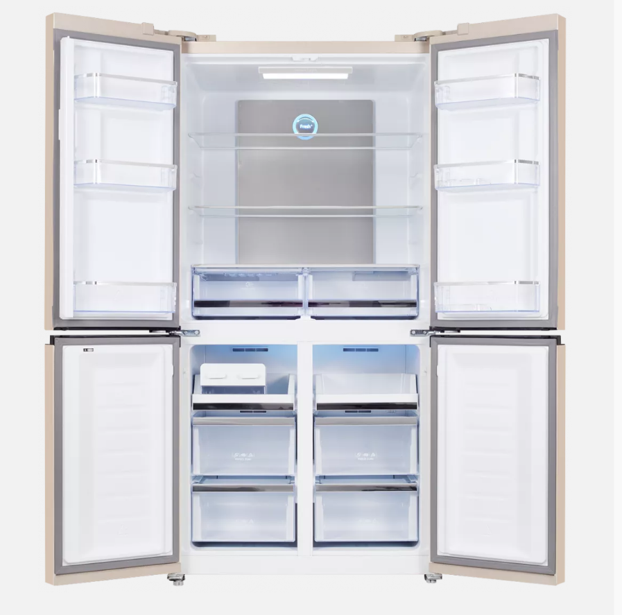 металлом, Система Nofrost, Smart дисплей с сенсорным управлением, Звуковой сигнал открытой двери, Функция Holiday (отпуск), Функция Блокировки, Функция быстрая заморозка, Функция быстрое охлаждение, Класс энергопотребления: A++, Тип конденсатора: скрытый, Климатический класс: SN-T, Инверторный двигатель, Уровень шума: 42 Дб, цвет: Бежевый/стекло