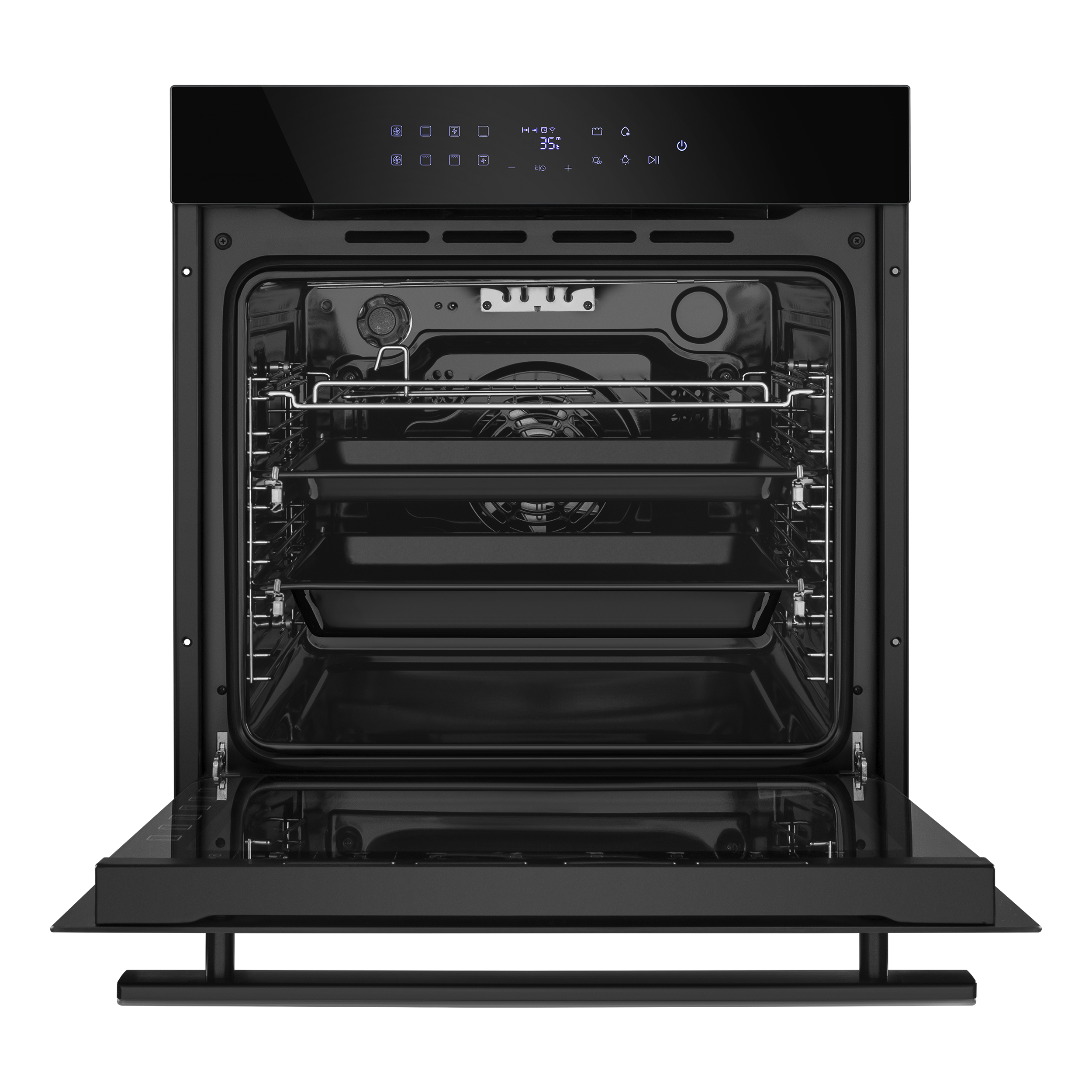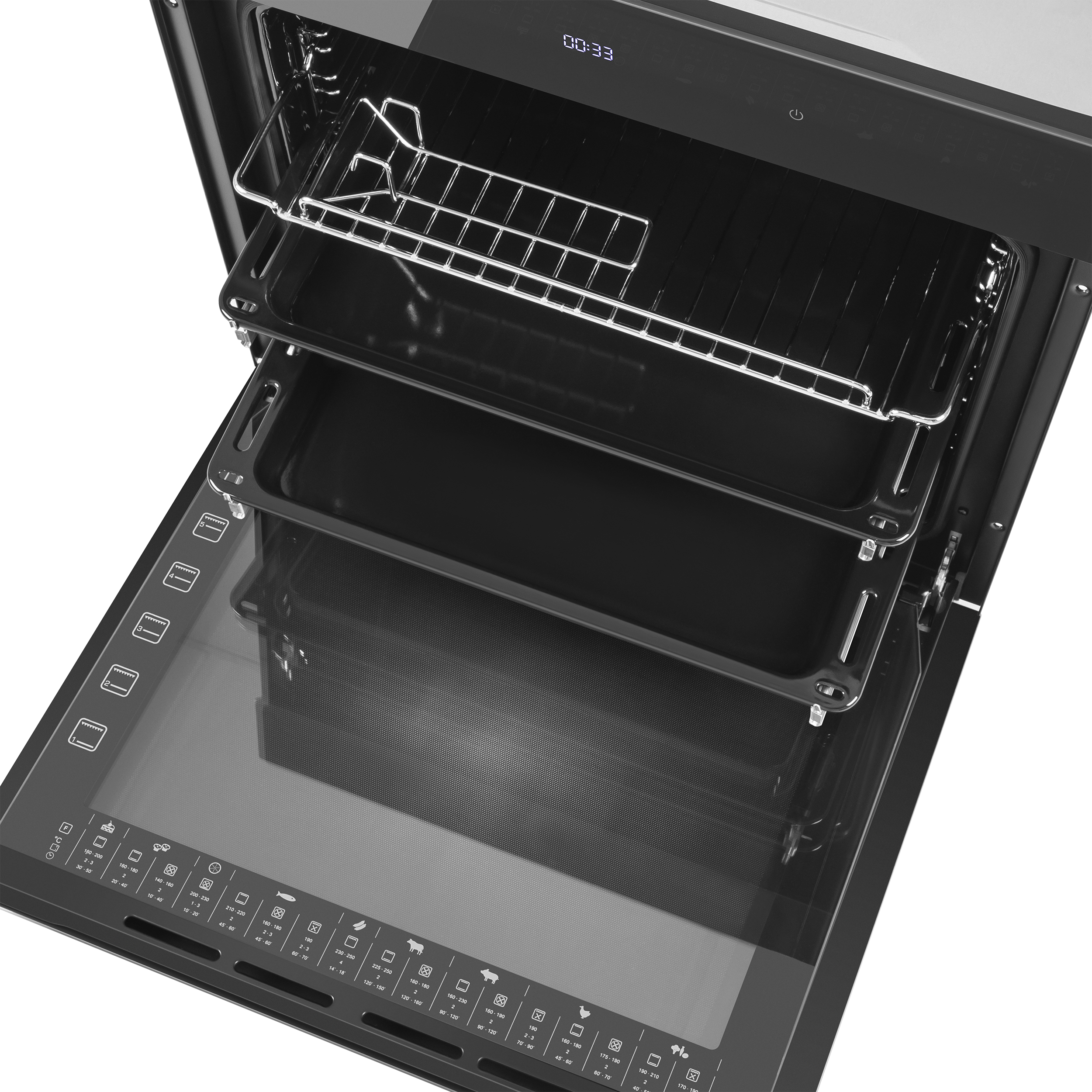 Сенсорный программатор FULL TOUCH с дисплеем COLD WHITE интуитивно понятен и удобен в использовании. Позволяет выбрать режим работы, температуру, установить таймер, включить функцию быстрого нагрева и блокировать панель управления. В данной модели поддерживается 11 режимов работы: традиционный нагрев, пицца, разморозка, конвекционный нагрев, нижний нагрев, горячий воздух, малый гриль, большой гриль, брожение, объемный турбогриль, внутреннее освещение.