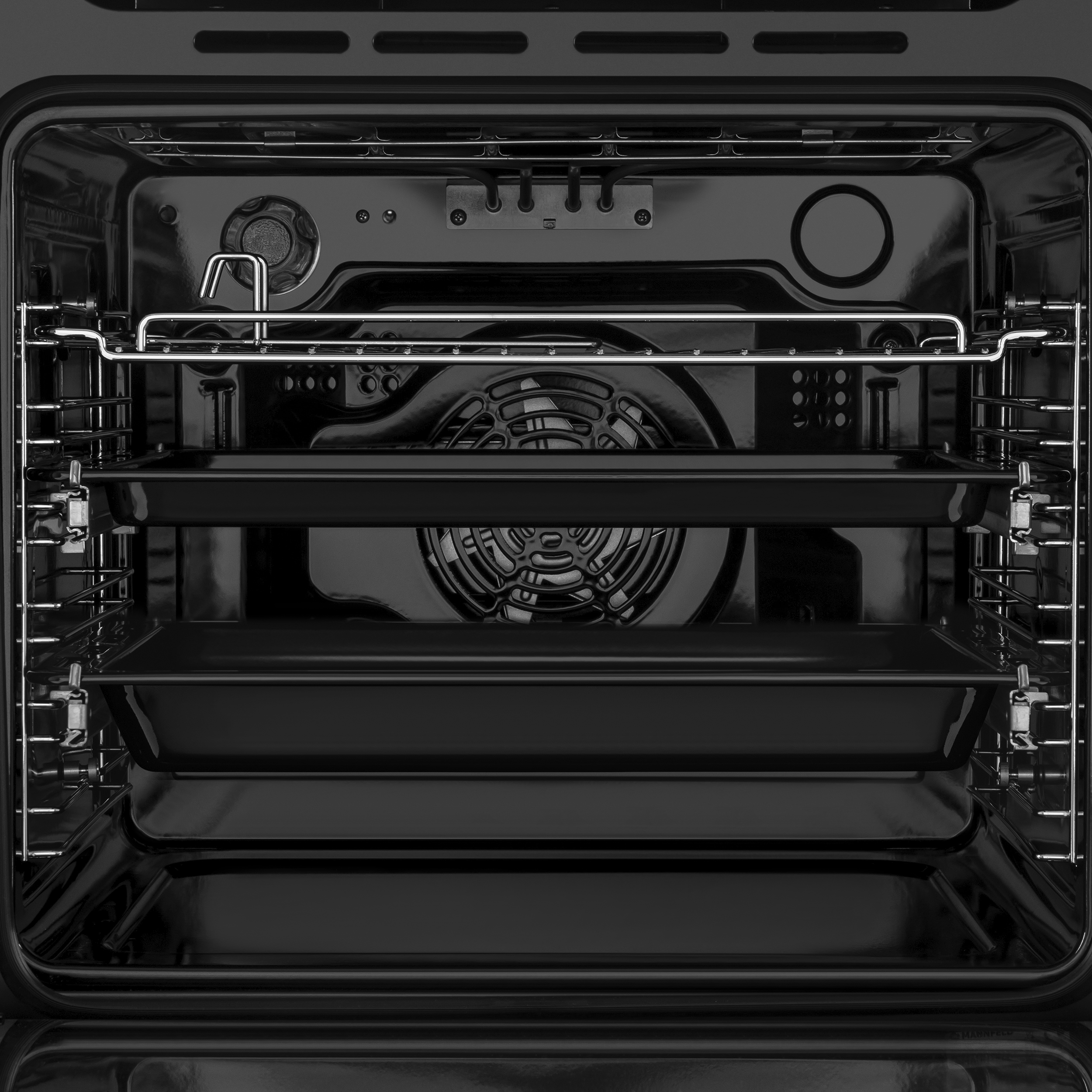 Комплектация: 1 решётка, 2 глубоких противня, 6ти уровневые хромированные направляющие, 2 уровня телескопических направляющих