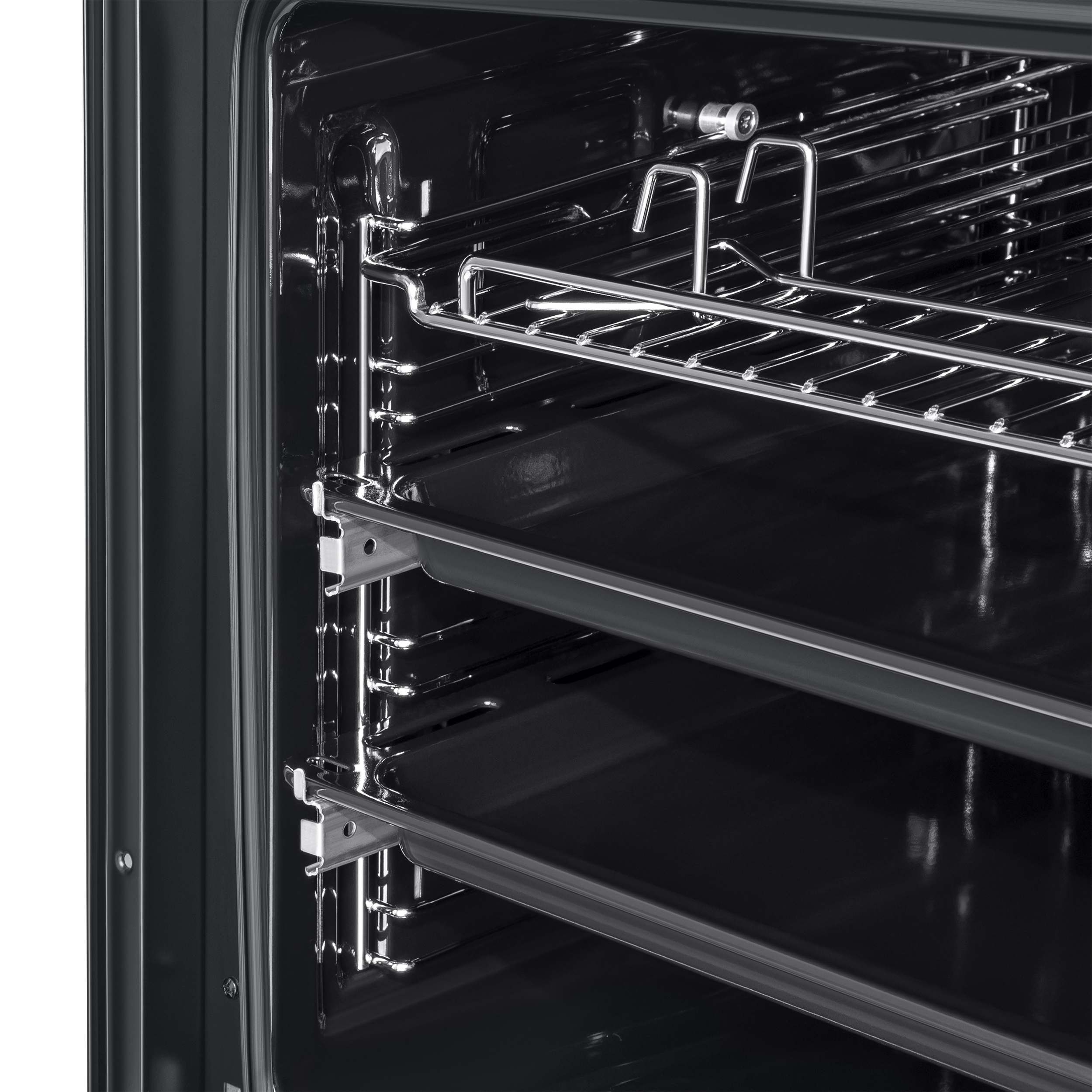 Объем 76 л при стандартных размерах 60 см позволяет готовить одновременно несколько блюд, разместив решетку или противень на одном из 6 уровней боковых направляющих. Два уровня оснащены удобными телескопическими направляющими. Внутреннее покрытие камеры выполнено из специальной легкоочищающейся эмали черного цвета.