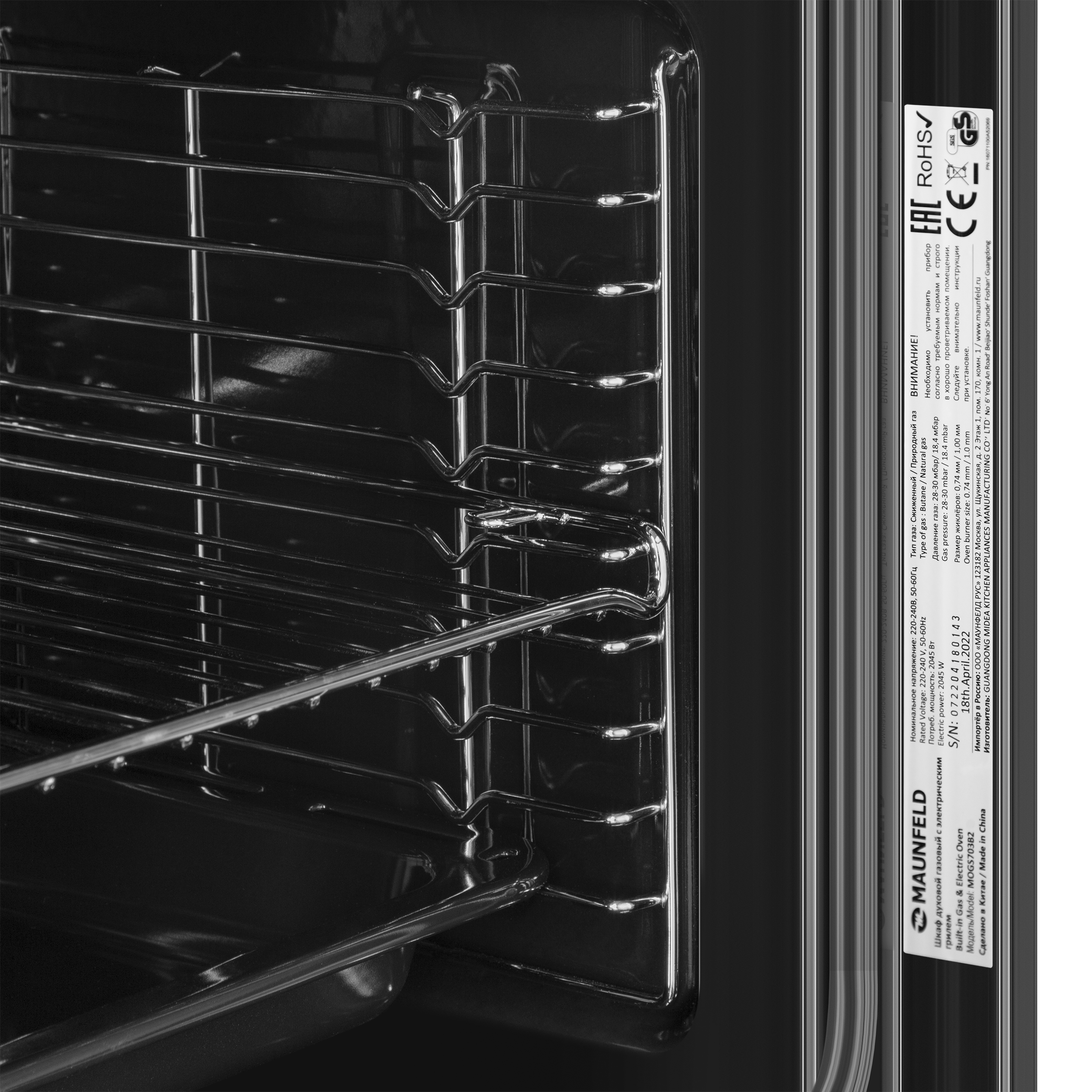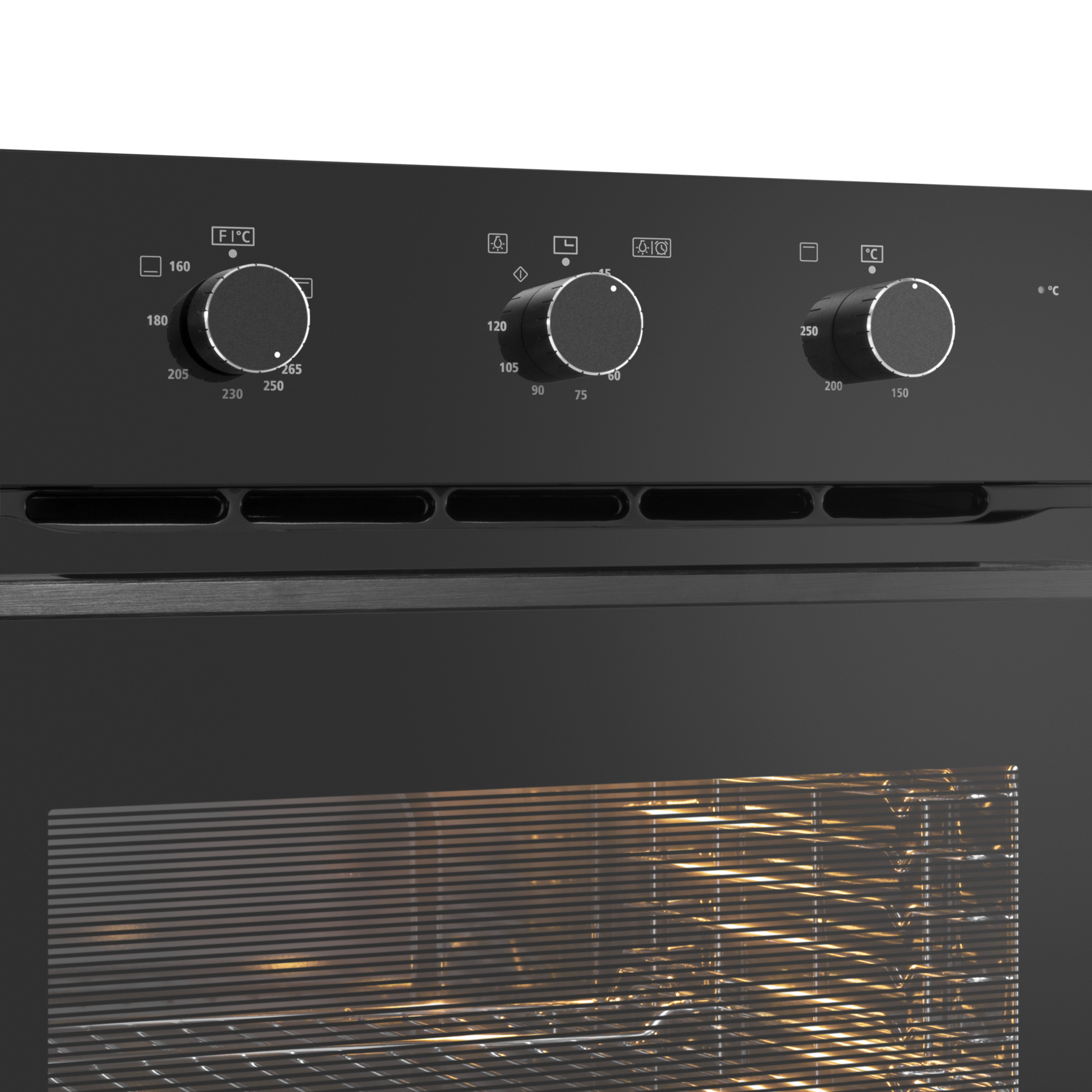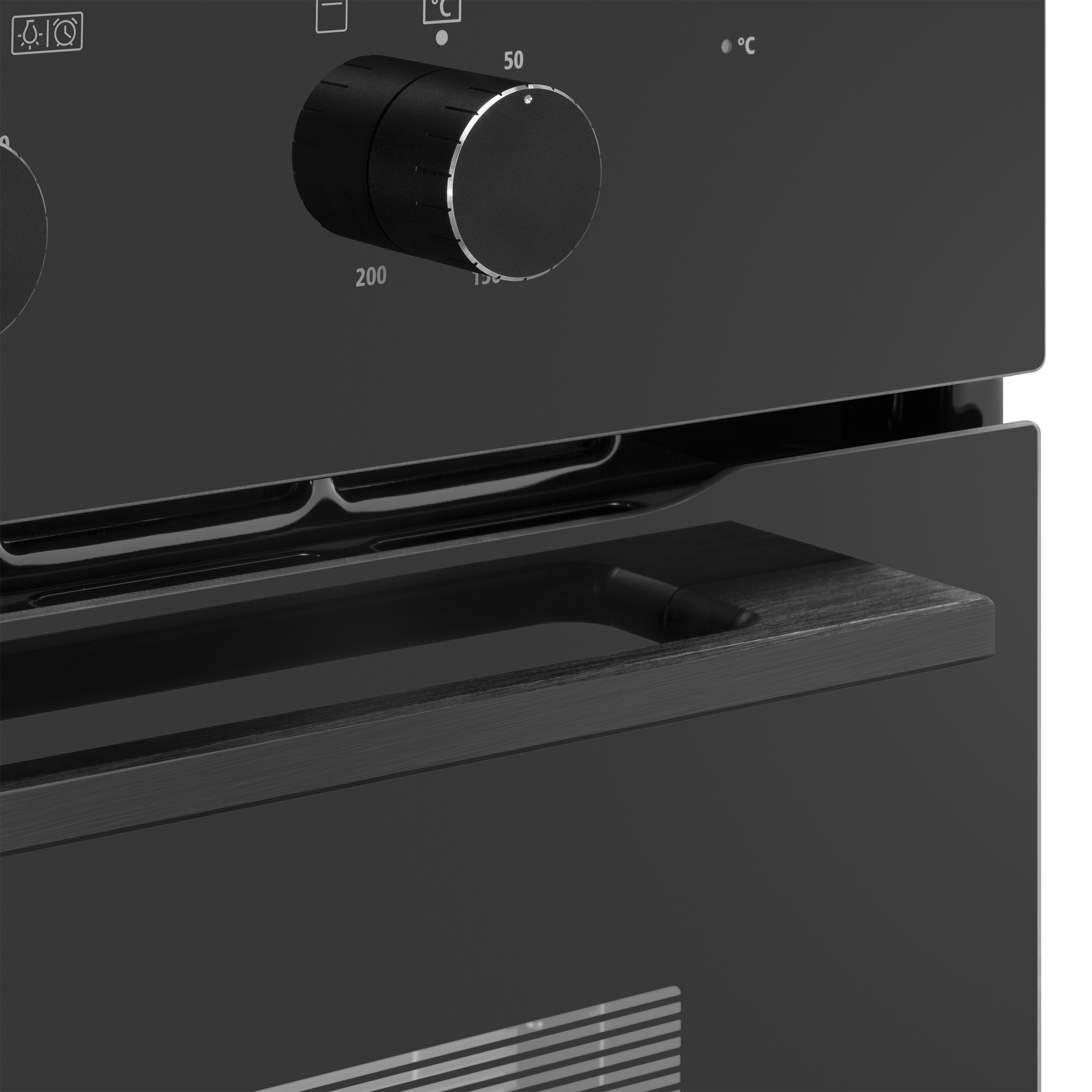 Трамп-линии нанесены на внутреннем стекле для создания визуального эффекта непрозрачности фасада: при выключенном освещении не видно посуду, находящуюся внутри духовой камеры, а при включенном освещении можно в деталях рассмотреть весь процесс готовки.