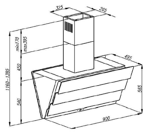 Островная вытяжка, ширина 90, отвод/рециркуляция, 1000 м3/час, электронное управление, таймер на отключение, 3 ступенчатая регулировка скорости, светодиодное освещение 3x3 Вт, анодированный алюминиевый жироулавливающий фильтр, угольный фильтр YKF R (опция), 53-65 дБ, цвет белый