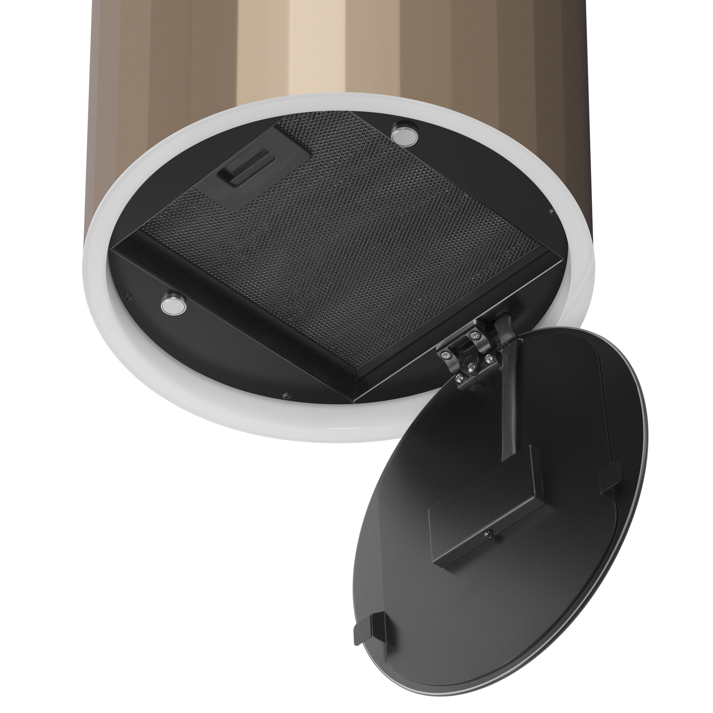 ДИЗАЙН Интерьерная вытяжка в стиле “современная классика”. Корпус вытяжки напоминает античную колонну с вертикальным профильным сечением. КОРПУС цилиндрической формы из нержавеющей стали с термостойким покрытием. В нижней части вытяжки находится алюминиевый многослойный жироулавливающий фильтр. Он легко вынимается и полностью разбирается, что сильно упрощает чистку
