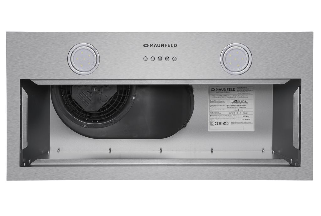 Корпус сделан из нержавеющей стали. На фронтальной панели черного цвета находится съемный многослойный жироулавливающий фильтр, выполненный из алюминия.