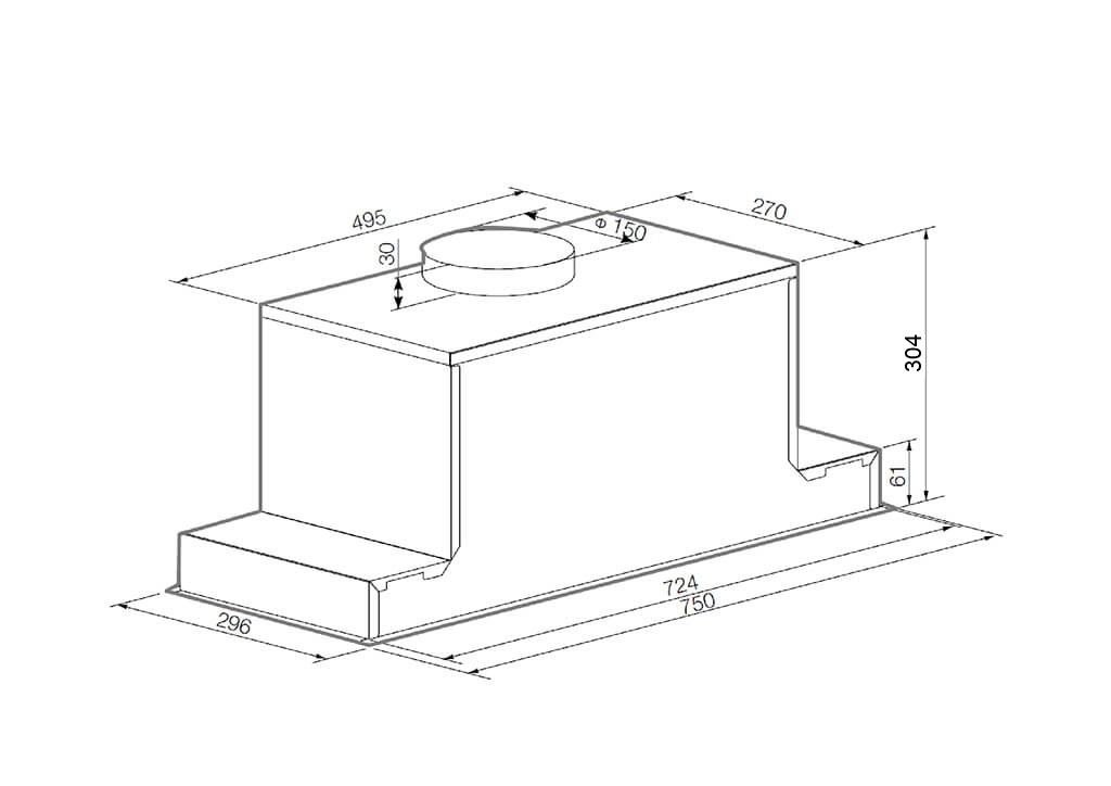 • Ш х В х Г= 750 х 277 х 296 мм