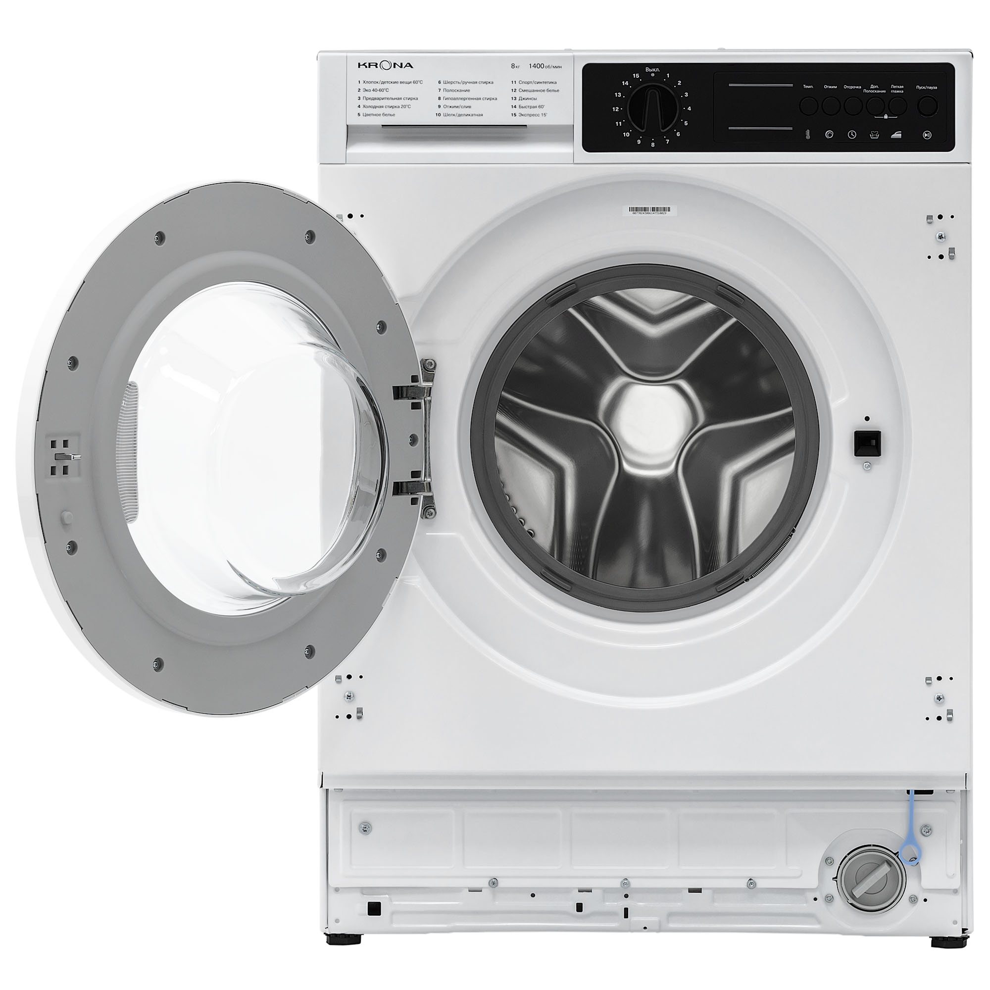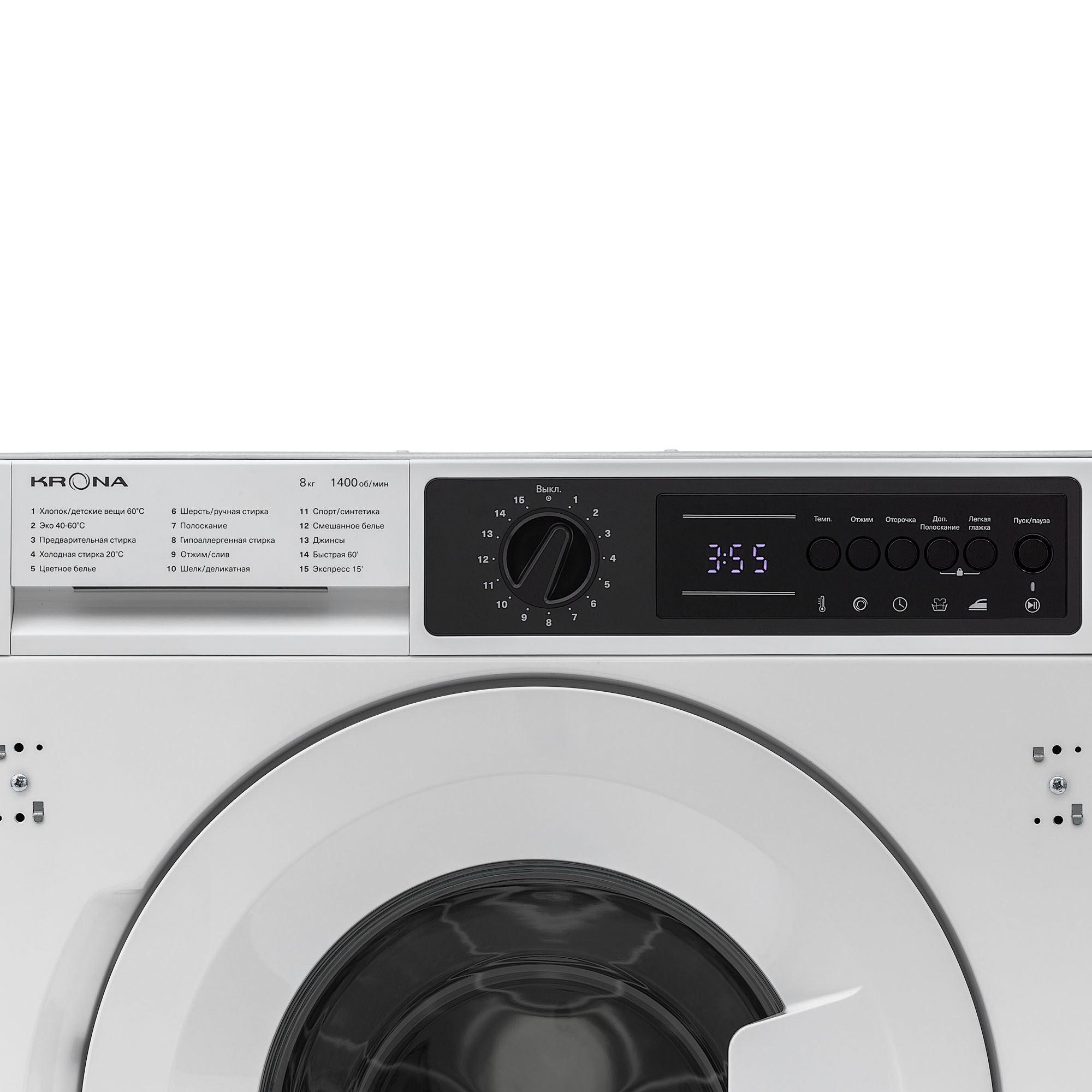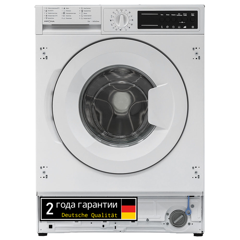 Встраиваемая стиральная машина KALISA объемом загрузки 8 кг оснащена 15 программами стирки для разных типов белья. Модель предусматривает настройку скорости отжима до 1400 об/мин, а также регулировку температур стирки в диапазоне 20-90 °С. Для вашего удобства в модели предусмотрена функция паузы, отложенный старт на 1-24 часа, дополнительное полоскание и режим легкой глажки. Безопасность пользователя обеспечивают такие функции как: блокировка управления от детей, электронная защита от перелива и протечек, контроль пенообразования. Стиральная машина KAYA отличается высоким классом энергоэффективности А+++, благодаря которому годовое потребление электроэнергии составляет всего 102 кВт.