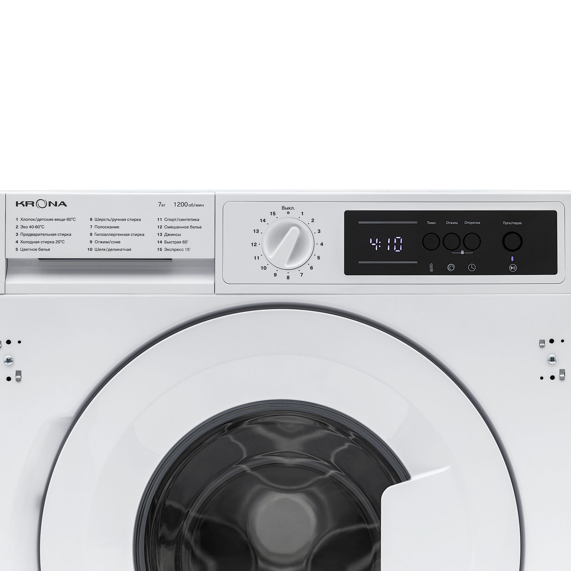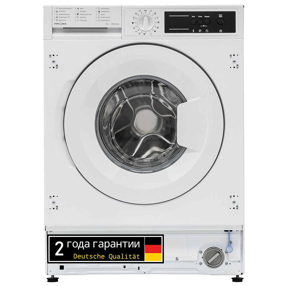 Встраиваемая стиральная машина KAYA объемом загрузки 7 кг оснащена 15 программами стирки для разных типов белья. Модель предусматривает настройку скорости отжима до 1200 об/мин, а также регулировку температур стирки в диапазоне 20-90 °С. Для вашего удобства в модели предусмотрена функция паузы и отложенный старт на 1-24 часа. Безопасность пользователя обеспечивают такие функции как: блокировка управления от детей, электронная защита от перелива и протечек, контроль пенообразования. Стиральная машина KAYA отличается высоким классом энергоэффективности А++, благодаря которому годовое потребление электроэнергии составляет всего 99 кВт.
